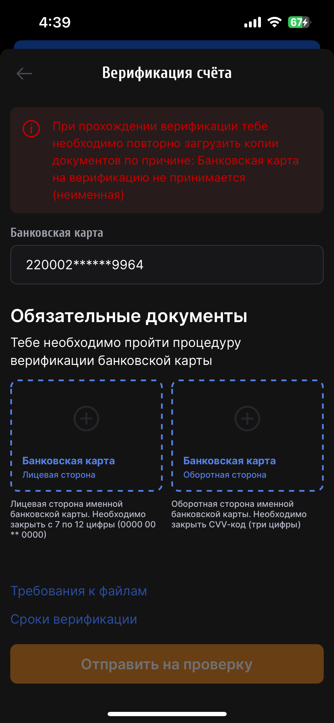 Здравствуйте, бк запросил верификацию банковской карты, я отправила первый раз, отклонили, написали Банковская карта на верификацию не принимается (неименная) а где мне взять именную?