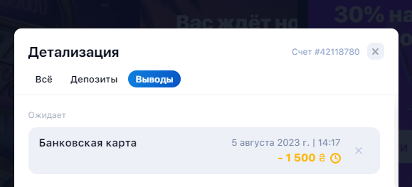 Здравствуйте выводил деньги с 1win в выводе написано что деньги зачислены но деньги на карту так и не пришли обращался в поддержку пишут ждать 7…