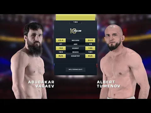 Мы увидим бой двух хороших ударников. Туменов постарается реализовать свой статус фаворита за счет классного бокса. В прошлом поединке с Вагаевым у Альберта возникли проблемы в борьбе, но Круз не будет применять партер. Бразилец привык решать вопросы в стойке, хотя с защитой и держаком у него есть проблемы. Бразилец действует агрессивно, хорошо работает на дистанции и может распределить силы на весь бой. Туменов является очевидным фаворитом, но быстрой победы не будет.