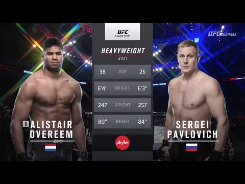 Сергей Павлович пришел в UFC в качестве чемпиона лиги Fight Nights Global в тяжелом весе. На россиянина возлагали большие надежды, поэтому на дебют дали очень опасного соперника — нидерландца Алистара Оверима. Поединок закончился для Павловича поражением - уже в первом раунде техническим нокаутом.
